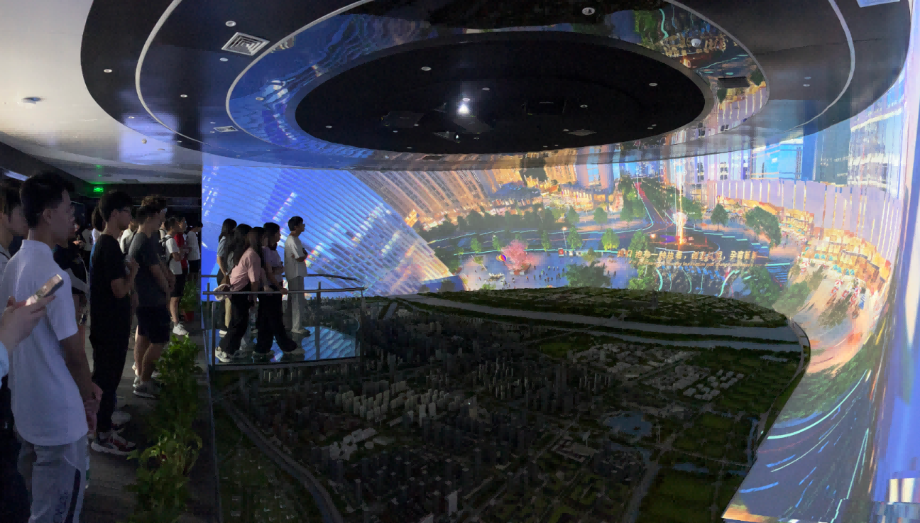 园区内现代建筑群错落有致,每一砖一瓦都蕴含着创新和科技的基因。kdpay钱包科技IT菁英暑期实训营的学员们怀揣着对科技的无限憧憬步入研创园展厅。展厅内部设计充满科技感,一块块巨大的模型和显示屏映入眼帘,生动展现了研创园的科技规划,以及从梦想走向现实的开展历程。